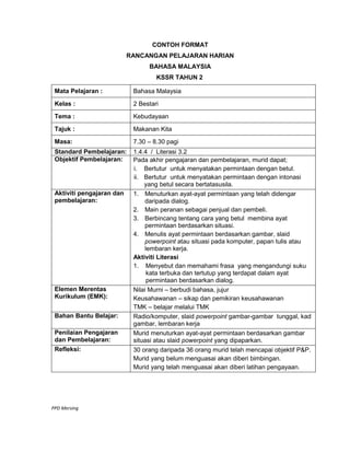 Contoh Rph Prasekolah Bahasa Inggeris